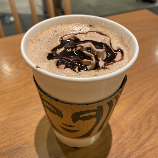 レジの店員さんはカフェモカとの違いを丁寧に教えてくれました♪ カフェモカはモカシロップを使っているところ、ダブル生チョコレートモカはホワイトチョコレートとチョコレートを溶かしたものを使っているので濃厚!さらにドリンクの上にチョコを削ったものをがかかってます♪と。(ちょっとうる覚え)