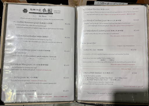 Uokuni is a restaurant offering a menu of beautifully-presented Japanese seafood dishes. To start, we had the Baby Sardine & Radish Salad, which came with chopped lettuce and tomatoes topped with a huge mountain of grated radish topped with baby sardines in a savory, acidic dressing. There were a number of set meals on the menu as well, which came with rice, miso soup, and tsukemono, along with a choice of entree. The Yakizakana & Sashimi Gozen came in two parts. First came a plate of fresh sashimi of three different white fish, along with the skeleton and head of a raw fish as decoration! Second came a whole snapper (the “catch of the day”) scored and grilled over coals on a skewer. I also tried the poached version, in which the whole fish was cooked in a savory sweetened dashi sauce (though the sauce was overpoweringly salty for my taste). But my favorite fish dish was the Saba no Miso, or mackerel poached in a sweetened miso sauce along with tofu, burdock, and spinach. The miso sauce wasn’t too salty and paired nicely with the meaty flesh of the mackerel. Overall, the seafood here was delicious and came at an incredible value, especially given the quality and freshness of the...