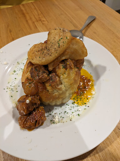 Read more地元食材のフレンチを手軽にいただける、とネット記事でみて足を運んでみました! フレンチってお料理自体は好きなのですが、格式張ってて疲れるんですよね。ここはそれがなくてありがたいです。 お箸があるのもポイント高い! 写真はいくつかいただいた上で特に美味しかったメニューたちです。 ミートパイ完成度高い! サクサクのパイの部分、しっとりと味のしみたパイの部分、ねったりとしたビーンズやジャガイモのフィリング、ゴロゴロのお肉をホグホグといただく。うンまー! 上に乗ってるポテトフライも手抜きなし、カリサクもさっと。良い。 オムレツはリコッタチーズのオムレツをチョイス。 これもうまーい!ガッツリ入ったリコッタチーズ、チーズ好きとして嬉しい限りです。 国産牛のカルパッチョは軽く冷燻されて出てきます。玉ねぎの部分が美味しいので全体に行き渡るよう混ぜてから食べるとより美味しかったです。 すべてのメニューを見たわけではないですが、量がまぁまぁあるのとしっかりした味付けなので、品数少なくてもお腹いっぱいになります。 参考までに。 シェフがホテル出身なのもあるのかしら?