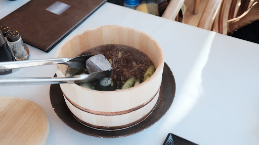 The nabe set meal turn out to be so bad. Just a bucket of seaweed and I only found 4/5 of small fish pieces ( i assumed it just sea bream, not local fish). The hot stone itself too gimmicky, i feel it just used to attract people, nothing to do with it taste.