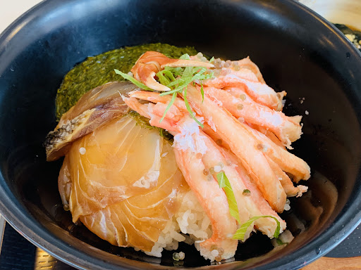 今回注文したメニュー -男鹿産天然真鯛と紅ズワイガニとギバサの3色丼 2180 -秋田県男鹿半島産 北綱がにチャーハン 1580 -男鹿産天然海の幸を使った石焼鍋定食...