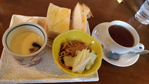Read more国道21号線沿いにありすぐわかると思います。 嘉門さんは、玄関を入ると靴を脱ぎます。 モーニングはトーストとサンドイッチが付きました。その他に茶碗蒸しと焼きそばでした。ほかの方の写真を見ると焼きそばがお稲荷さんだったり、巻き寿司だ...