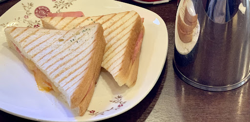モーニングで+330円のメルトチーズサンドを頼む。 衝撃的にまずい!しかもペっラペラ!!!! ベーコン乾いてる、ハムもよくこんなに薄く切ったなとゆうレベルのまずハム。 パンもパサついててまずい。 こんな不味いもの久しぶりにたべた。 120円くらいの価値。 たっぷりアイス珈琲は700円。 ボトルに入ってきて銅製のカップは冷えていてこれはなかなか良い。 店も綺麗でゆったりできる。 が、 食べもの史上最高に高すぎ不味すぎで総評価は⭐︎2。 雰囲気を楽しむだけに1110円は...