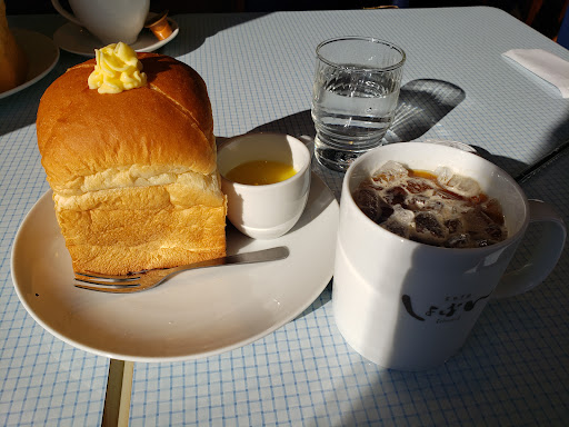 Read moreモーニングに伺いました。 ふわふわの焼きたてパンが一斤、ドリンク代だけで付いてくるのはとてもお得です。お腹いっぱいになりました。 ブレンドコーヒーは良くも悪くも万人受けしそうな飲みやすい感じです。コーヒーよりもパンがメインだからでしょうか。 バター?マーガリン?がパンに乗っているのですが、ちょっとくどかったです。手でちぎって食べたのですが、手がベタベタに…。どう食べるのが正解? 乗せずに別皿で持ってきていただけるなら次回はそうします。 店内はそこそこ広く、清潔でした。 店員さんがなんか総じて元気なかったので仕事する前にモーニングを食べさせたらどうでしょう?笑