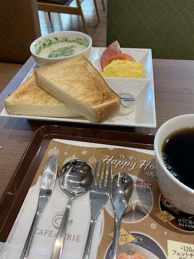 Read more初めて行きました☕! 初めにカウンターでオーダーと会計して、ドリンクはその場で受け取り席に座り、食事はベルが鳴ったら自分で取りに行くフードコートのようなスタイルのカフェです モーニングはあるのですが、ランチはないのでランチセットみたいなお得なのがあればいいかなと思います。 焼きたてのサンドイッチはすぐに取り入っても少し冷めていたのが残念。。ですがすごく美味しかったです♡ ドリンクサラダ付きで1200円でしたが、セルフなのでもう少し安かったらいいかなと思います🥗 広めの席でフリーWiFiありで居心地はとても良いです(`・ω・)b 店員さんはすごく丁寧に対応して下さり嬉しかった...