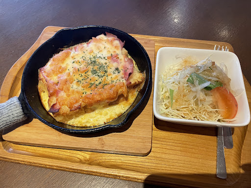 Read moreモーニングに伺いました🍞☕️ドリンクバー付き580円×2にポテト100円をつけました✨ポテトが先ず運ばれてきて太めで塩が沢山かかっていて美味しい‼️フレンチトーストの味を、私はベーコンチーズ🧀🥓彼はマショマロチョコにしてましたε🍫)))彡ベーコンチーズは、ブラックペッパーをかけられて最高⭐️沢山ドリンクがあって嬉しい👍🏻暖かいドリンクもあります❣️注文してからドリンクを飲みながら待っていると、熱々の鉄板に乗ったフレンチトーストが!サラダ付きです🥗オニオンドレッシングがかかってました🧅美味しかった🤍意外と量がありました!和モーニングとスープモーニングを頼んでいるお客さんがいましたが、そちらも気になりました😻また伺いたいです👍🏻駐車場は目の前に何台か停められそうです🅿️店内禁煙で、決済は...