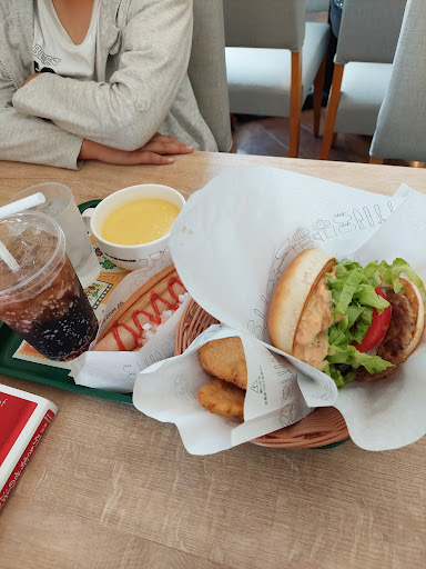 Read more店内はめちゃくちゃ混雑していて、オーダー待ちの人、商品を受け取る人等で、入口はごった返し、後から入ってきた人のせいで、順番がぐちゃぐちゃになり、色々心配になり、ドライブスルーにしました。 せめて店員さんから並び方とか案内があれば、あそこまでぐちゃぐちゃにならなかった気もします。 何やかんやで、かなり待ちましたが、モスはやっぱり美味しいです。 かき揚げバーガーにドリンクとチキンを注文。 良いお値段になりましたが、クオリティ高めなので、満足です。 味は良いけど.........