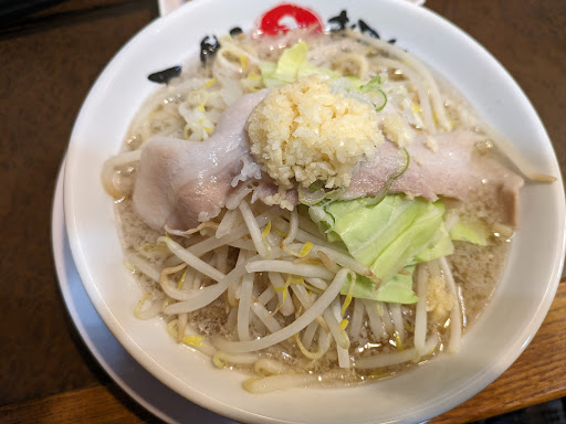 まるはちだけに8月8日グランドオープン(笑) 店内9席の狭小カウター。(前店飲み屋のか○や) 珍しい朝ラーとモーニング目当てで、男気朝ジロー200gをオーダー。これまた珍しい塩味の二郎系。にんにく、濃さ、背脂マシはできるが野菜マシは追加料金。 麺…太麺だがオーション麺ではなく食べやすい。 スープ…あっさり塩味でにんにくとの相性も良く旨い! 野菜…二郎系としてなら少ない。増せれば問題なし。 チャーシュー…ペラッペラの豚スライスが一枚…。ジローと名乗るならこれはいただけ無い。 モーニング…乗せ放題(1回のみ)とあるが、大皿に1回店分ぐらいしか盛られてないので、とてもじゃないが遠慮せざるを得ない(笑)先着制なのか追加するのか不明。モーニングは基本サービスといった位置づけだが、朝ラーで900円(ベースが880円)と僅かながら値段を上げている…コスパは高いとは言えないが、生卵と無料ライスでTKGを食べられるのを加味すると値段相応。写真のモーニングはポテサラ食べ終わったあとで、ヨーグルトフルーツポンチを混ぜたあと。夜営業がないから平日はまず行けな...