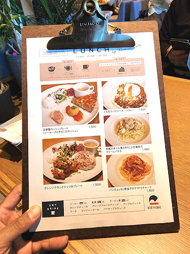 注文はランチメニューから選びました。 毎月ランチの内容が変わるようです。 キッシュプレート、キーマカレー、パスタなどなど。。 今回はエビと蓮根のコチジャンマヨプレートを注文しました! もちろんタルトも食べたかったので、Bセットにしてタルトも注文。 タルトを注文する際は、ショーケースの写真を撮って席で選んでください。とのことでした!