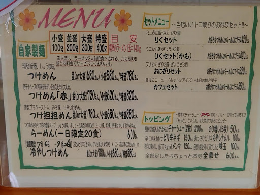 現金のみ。 つけめん小盛り、りくセットを頂きました。 つけ汁が醤油ベースのあっさりした感じなので、私は食べやすいかな。 人によっては物足りないかもしれませんね。 麺は、中太麺のストレートです。