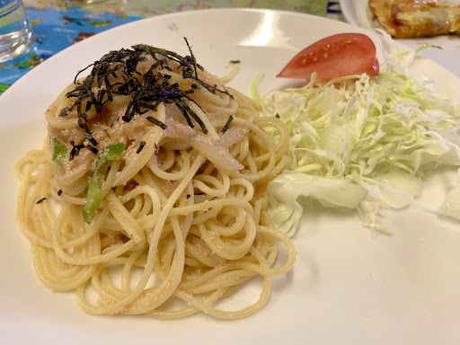 時節柄、ランチしかやっていなかったが、そのボリュームには驚いた。 20cmのピザときのこスパゲティ、コーヒーで¥800-❣️ 味もほどよく、時計型のブリキ製ストーブ、お店のおかあさん、ジモティのおじいさんのと会話とランチ以外も盛りだくさんで楽しく時間を過ごせました。 コロナの対策なのか、写真にあるような簡易な掘建て小屋のような風情ではあるが清潔感はありました コロナが終息し、暖かくなっ...