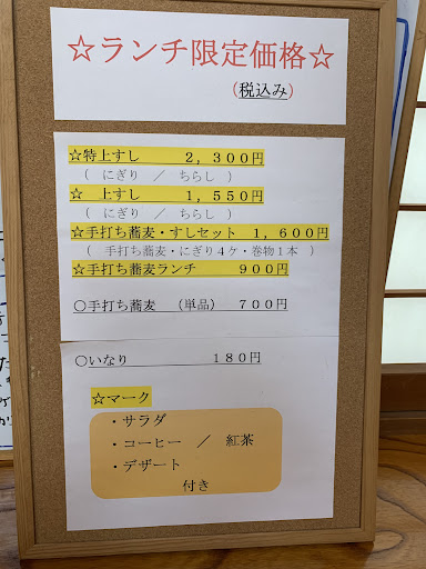 Read more友人のおすすめでランチに行きました。 蕎麦とお寿司のランチを選ぶと、サラダ、お蕎麦、蕎麦湯、握り、プリン、コーヒーのボリュームでした。 お蕎麦は9割蕎麦。綺麗で美味しいお蕎麦に感動しました。今度蕎麦好きの旦那さんを連れてこようと思います。 お寿司は回転寿司に慣れた最近、やっぱり人が握ったお寿司って美味しいなぁ、と思っちゃいました。シャリの大きさがちょうどよく、どのネタも美味しくいただきました。 (イカってこんなに美味しかったっけ?) デザートのプリンもカラメルを焦がしてあって香りもよく、パリパリとしっとりのプリンが美味しかったです。 こういう所で出てくるランチのコーヒーってあんまり味に期待してないのですが、普通に美味しいコーヒーでした。 全体的にお値段よりも満足感の高いランチで、お友達にお勧めしたいお店でし...