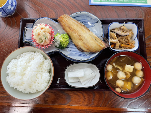 ホッケは小さいながら粕漬けのような味がある程度ついているので、醤油等の調味料は不要です。 ホッケの皿にはブロッコリーとポテトサラダが付いていて、良い箸休めになりました。 小鉢には切り干し大根があり、これもいい具合に味が染み込んでいて美味しい。家庭的な味付けだと思います。 また、お麩、椎茸、人参の入ったとろみのある汁が劇的に美味い。椎茸の風味が感じられます。 ご飯もちょうど良い量だと思います。