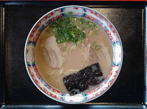 小城市三日月町長神田、国道203号線沿いにあるラーメン屋です。江北町生まれのラーメン屋、「喰道楽佐賀ラーメン」の三日月店となります。「喰道楽」独特の、横に長く左右どちら側にも出入り口がある店舗構造で、横長のカウンター席、テーブル席、小上がり席、ボックス席が完備され、店内中央にレジやおでん、セルフのサラダや漬け物類が配置されたスタイルとなっています。駐車場は店舗の南北に整備されていますが時間帯によっては出入りがしにくいので要注意です。さて「ラーメン」ですが、優しく甘い白濁した佐賀系とんこつスープとなっています。麺は中細ストレート、具はチャーシュー、きくらげ、海苔、ネギといった構成の一杯です。大盛り対応あり、替え玉制あり、各種トッピング対応ありとなっています。ラーメンのバリエーションやセットメニュー、サイドメニューが豊富なのもこの「喰道楽」の特徴ですね。他の店なら焼きめしや天津飯を頼むのが通常なのですが「喰道楽」に限っては「ミニカツ丼」がマストです。お勧めしときます。 「喰道楽佐賀ラーメン」の本店は、1973年に武雄市江北町で創業しています。江北町からじわじわと東へ版図を広げる過程で、1998年にここ三日月店が開業しています。店内は活気があり、味も接客も...