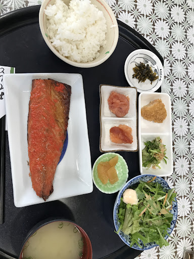 以前から気になってたこのお店 昔は明太子が食べ放題だったというから凄い 今はご飯のおかわりも有料ですけど定食の美味しさは十分満足できるモノだと思います 今回はイワシ明太セットを注文 ほどよく脂の乗ったイワシのジュワッとした身に明太子を絡ませて食べるとまあ美味いこと これに小鉢に盛られた明太子や高菜、一口サイズの明太コロッケなんかもついててご飯が進みまくりました あとやさしい味の味噌汁が凄くいい 他のオカズが塩分高めなぶんマイルドな味噌汁でバランスが取られてます 一品モノでたのんだ明太丸君もモチモチ食感がとても面白いですね 店内にさかえやの商品がたくさん売ってあるので...