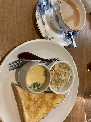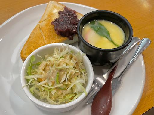 Read moreお腹がすいたので、 通りかかったお店に駆け込みモーニング☀️ 昔ながらのモーニングで、5種類から選べれます。茶碗蒸しが食べたくて茶碗蒸しにしましたが、ちょっとだけ柔らかすぎたかな?(液が固まってない部分もあり。きっと忙しくて手が回らなかったのかも。。。でも味は美味しい) パンのトッピングも選べれるのでその日の気分で◎ 店内は地元の人で賑わっていましたが、席数も多いので回転は早いと思います。 お得なコーヒー...