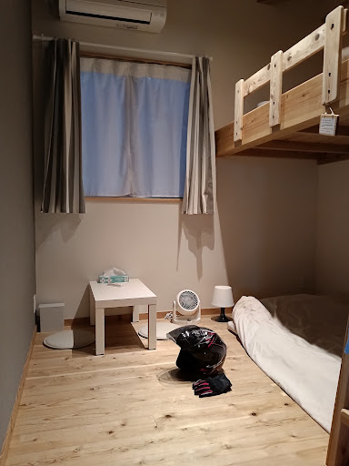 Read more先日、阿蘇と由布院方面のバイク ツーリングの宿泊先として利用 しました。モトブロガーさんの 動画を見て知ったのですが、阿蘇方面 のツーリングの拠点とし丁度都合の 良い場所で、料金も格安(平日は 1人3,500円)と言う事も有り 初めて利用しましたが、個人的には とても満足の行く宿でした。 素泊まりが基本ですが、早めに宿に 着けばカフェメニューを頂く事も 可能な様です。もちろん持ち込みも 可能な様ですが、コンビニまでは 少し距離がある(バイクで15分位) ので、宿泊前に購入しておく事を オススメします。温泉は歩いて行ける (歩いて5分位)の所にありましたが 自分の行った水曜日は定休日でした。 ただし、他にもバイクで5分位で行ける温泉が、他にも有りました。 週末は満室の可能性が有るが、平日は 空いている(自分が宿泊した日は、 自分1人だけでした。)との事ですので、気になる方は問い合わせしてみて 下さい。部屋はこじんまりしていますが、キレイに清掃されていました。 アメニティは無いので、必要なものを 持参する必要が有ります。 夜はとにかく静かです。逆に朝は鳥の さえずりで目覚めるといった非日常を 体験したい...