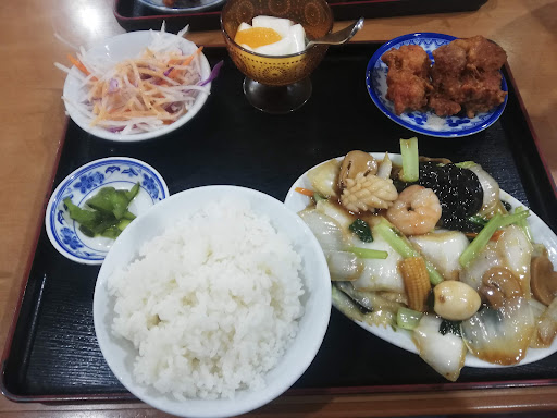 黒っぽい麻婆豆腐はピリ辛でシビレ先行型、山椒が効いてて旨い! 固めに炊かれたご飯とフワフワ玉子に麻婆豆腐があわないわけがない!! 揚げたてアツアツの唐揚げで上顎を火傷しなから完食で腹パンパン💦💦💦