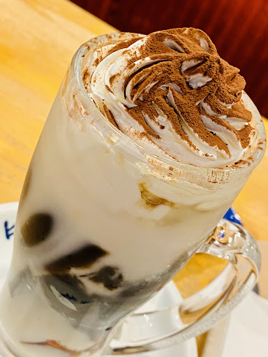 ‘22/7月 ◆ジェリコティラミス¥660 以前ジェリコのチョコバナナがおいしかったので、今回はジェリコの『ティラミス』 テーブルにやってきたジェリコティラミスは、コーヒーゼリーのところが「ボコッ!ボコッ!」とまるで息をしているよう(コーヒーゼリーが下り切ってなかっただけ😆) 「よくかき混ぜてお召し上がりくださーい」とおっしゃったので、まぜまぜしてズズズーっといただくと「ホントだ‼️ティラミス✨」そこには紛れもないティラミスが😳ふしぎ〜ティラミスを飲む感覚✨おいしい😋 エスプレッソソース&チーズドリンクの組み合わせ🤝なるほどすばらしい😉