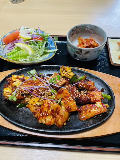 Read more仕事で、時間が合えばお昼ごはん食べています。 焼き肉定食は、量が多いかなぁ~⤴️と思って食べてると、辛さで食欲増進ペロッと食べれます。 冷やし中華も普段食べているのとは、具が野菜たっぷりで多いかなぁ~⤴️がやっぱり食べれます。 麺の下に氷が敷いてあって伸びるのを防いでくれていてと...