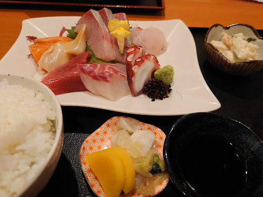 刺身定食1300円(税込)を注文しましたがこれがまた豪華! 種類は沢山あるし魚は美味しいしご飯も甘くて美味しいし味噌汁も即席でなくすごく美味しかったです。 こんな美味しくて(きっと他のメニューも美味しいに違いない)感じのいいお店が近所にある方がうらやましいです! ここを通る事があったら是非また寄りたいと思うお店でし...
