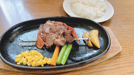 Read moreGW、11時20分に到着。10組くらい並んでいました。入り口は閉まっていたので、並んで待つのかな〜と思いながら入り口に近づいてみると、丁度店員さんが顔を出したので、並んで待てばいいですか?と聞くと、こちらに名前を書いてお待ちくださいと言われ、店内のボードを指さされ、見るとまだ誰も書いておらず、、??と思いながらもとりあえず書いて列に戻りました。11時半になり予約の方が2組くらい先に案内され、その次になんと私が呼ばれました。そうです、並んでいるほとんどの方が名前をかかずに並んでいたのです。 皆さん口々に名前を書かなきゃダメだったんだって!!知らなかった!!と怒り気味。 そうですよね。。 皆んなの冷ややかな視線を受けながら店内へ入りました。 肝心の料理ですが、確かにランチの目玉のハンバーグ&コロッケは611円と安いですが、頼んだのはちーころ1個187円とステーキ1100円とビーフ鉄板焼きにしました。ちーころはコロッケの中にとろーりチーズが入っていてとても美味しかったです。しかし、ビーフ鉄板焼き880円はメニューに写真がなかったのでイメージと違い、玉ねぎがほとんどで小さな細切れビーフが少し。味はとても甘ったるくて私はダメでした。ステーキは角切り肉が串に刺さっておりそれがベーコンで包まれてました。お肉も少し硬めで味も普通、ステーキソースはあまり、、、好みではかなったです。どうしてこんなに人気なんだ...