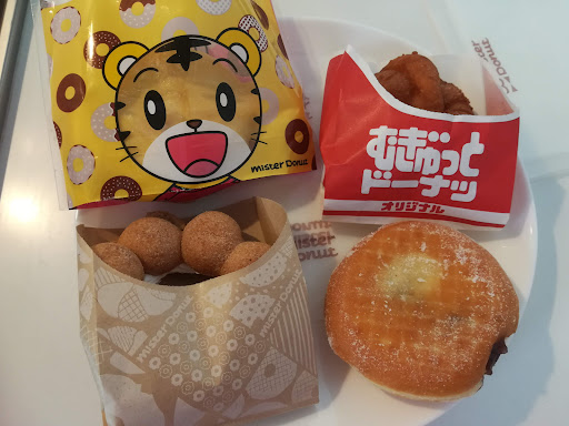 並んでるドーナツの棚に引き戸が付いていて、コロナ対策されてます。トレーとトングも扉付きで置いてありました。 こちらは自分で選んでトレーに乗せてレジへ行ってお会計するタイプのミスド。 店員さんが取ってくれるタイプだとゆっくり選べないので、自分で取るシステムの方が好き。 ホームページに載ってないドーナツもあり、ホイップ黒蜜ポンデリングを購入♪ イートインスペースもあります。 子供を抱っこしていたので、帰りのドア開けを店員さんがやってくれて、とても親切で助かりました! 外からの入り口は自動ドアなのですが、店内へ入るドアは手動で押したり引いたりしないといけないので、抱っこで片手がふさがり、更にテイクアウトの紙袋を持ってて両手がふさがってるので、ドア開けてもらえたのは嬉しかったです♪ 新商品のむぎゅっとドーナツは、むっちむちで美味しかったです♪ 他にチーズやレーズンなどのむぎゅっともあるので次回食べたいです。 ホイップ黒蜜ポンデリングはポンデ黒蜜とホイップがサンドされてて美味しかったです(^O^) しまじろうは、片面チョココーティング、中にホイップが入ってます。 しまじろう使うなら2~3歳でも食べられるもっとシンプルなドーナツにしてくれたらいいのに…と思いました。 あんこ入りドーナツもふわふわで美味しかったです。 また...