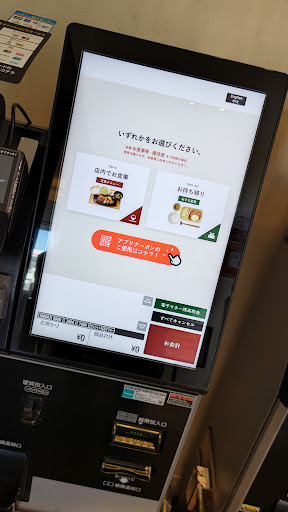 クーポンを使うところも最初の画面以外でないのでそこで見落としてメニューの画面に行くと一切なく どこどこ??状態。 結局わからず定食と卵焼き 単品の唐揚げで 一旦お会計。そのあと定員さんにクーポンの使い方を聞いて納豆を購入。 お年寄りの方は絶対迷うようなシステムです【実際このあと混雑してました】 機械がふたつしかないので二人わからず占領してしまうと後がものすごくつっかえてイライラする状態に。 実際この後私も追加で購入しに販売機のところに戻ってきますが年配の方がふたりなになにわかんない!!となっており後が3人ほどつっかえていました。仕事のお昼休みにパパッと食事を済ませたい方には向かなさそうです。