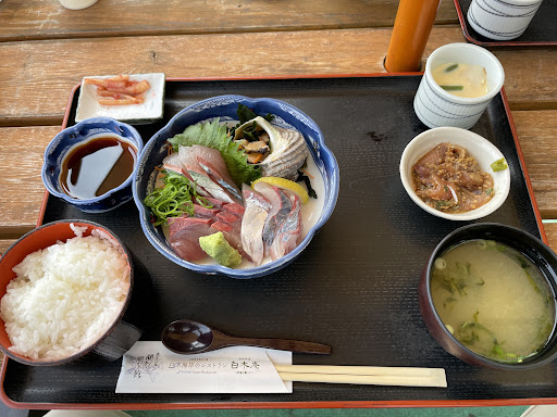 「あまべの郷 関あじ関さば館」、神戸から来た先輩と関あじ関さばを食べに行く。場所は佐賀関の白木海岸、大分市中心部からだと国道九四フェリーや佐賀関中心部を過ぎて、2〜3kmほど先。国道217線沿いにある。 『白木海岸のレストラン』という名前の通り、店内カウンター席やテラス席から海を見ながらの食事ができる。 土曜日の12時30分に着いたが、3組待ちと意外と少ない。われわれの後に一気に4、5組並び始めた。待つこと15分もうすぐと思っていたら、「順番が前後しますが、4人連れの〇〇さん」「順番が前後しますが、5人連れの〇〇さん」と4組ほどに飛ばされる。われわれ2人と、前に並んでいるお一人の方は飛ばされる。おひとり様やカウンター2人席が空いたから飛ばされるケースはあるが、4、5人の組を先に入れるなんて聞いたことない。30分待ち呼ばれたと思ったら、「テラス席なら今案内ができます」との事。天気は良かったが風は強く、ちょっと寒いなぁと思ったが、テラス席に行く。われわれの後の2人連れご夫婦もテラス席に案内されていたが、席を変えてくれと言ったが、駄目だったので寒さのあまり車まで防寒ジャケットを取りに行っていた。店内を見ると4人テーブルも決して広くなく、どんな基準で1人や2人のお客の席を決めているか分からない。あまりにも酷かったので、帰りに店員さんに店の都合で、順番を飛ばすのはおかしいだろうと苦言を言ったが...。ここまでは★① さて、肝心の料理だが、お客のほとんどが、「関の海鮮丼」か「関あじ関さば関ぶり食べ比べ御前」を注文している。われわれはもちろん「関あじ関さば関ぶり食べ比べ御前」(2,200円税込)。しばらくして、料理が運ばれてきた。関あじ関さばは決して、A級ではないが、間違いない関あじ関さばである。脂が甘く豊後水道で引き締まった身は弾力もあり美味しい。サザエやりゅうきゅう小針も付いていて嬉しい。 食後にドリンクバーも付いているので、コーヒーやジュース、ココア、なども飲める。1階はお土産品を販売していて、ソフトクリームなども販売している。 ちなみに、大分を代表するブランド魚“関あじ”...