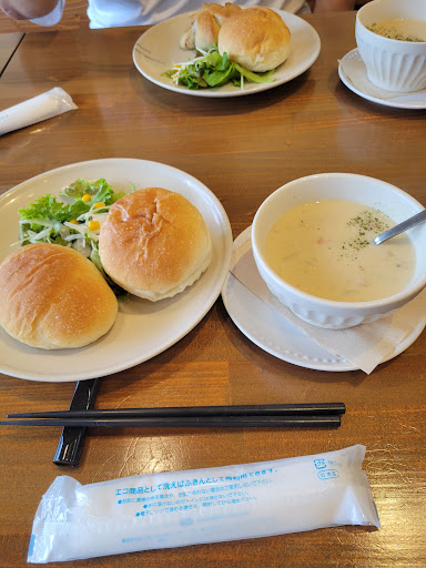 Read moreいつもランチ時は駐車場が満車で諦めていましたが、3度目に訪れてやっと入れました。 お昼のクラムチャウダーを注文。 妻はグリルチキンと冬野菜の柚子胡椒クリームバスタを注文。 前菜のサラダからオシャレで美味しい。 そしてお待ちかねのクラムチャウダーは、ホワイトソース・細かく刻んだ野菜・アサリのエキスが濃厚で旨い。 ハーフサンド?結構ボリュームがある。 2種類の具から選べるのが嬉しい。 ⚫︎エビとアボカド ⚫︎グリルチキンとカマンベールチーズを選択。 カマンベールチーズのトロリとした食感・トマトはジューシー・グリルチキンのスパイスが相まって最高です♪ 付け合わせのポテトが1人前にしては量がかなり多く、デザートを注文した事が悔やまれる。満腹です。 妻の注文したバスタを一口頂いた、柚子胡椒をバスタに和える発想はなかった。 爽やかで美味しい。 リピーター確定です...