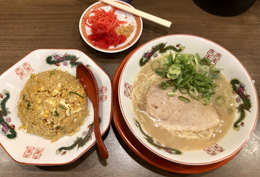 8/15 12時前 晴れ渡る空が暑さを際立たせる日 、映画を観た帰りに「博多ラーメン ふかださん」に伺いました。ラーメン屋さんって何度か通う内にその店の味や特徴やクセ等が少しずつ見えてくるものだと思います。今回は前回の大盛りを残した反省から博多ラーメン普通盛りと半チャーハンにしました。前回迄は最初のお冷が提供されましたがカウンターに置かれたコップとピッチャーからセルフで入れる方法に変わっている様でした。無料トッピングは紅しょうがとおろしニンニクを選び辛子高菜はすごく辛そうなので遠慮しました笑 。10分強で提供されましたがチャーハンはしっとり系やや濃いめの味付けですが本当に旨いですねこのチャーハンなら倍の量は食べたいですね。ラーメンは今回も気がついたのですが量がやっぱり少なめで気になります。又、麺の茹で加減が前回と比較して茹で加減を普通で頼んだんですが硬めに感じました。あとチャーシューは大振りな物が1枚でボリュームがあるのですが私の好きなチャーシューが柔らかめのもののせいか固く感じてしまいます。スープは旨みが強く美味しいですね。文句が多い様ですがレベルは十分あり通う内に気になる点を挙げてみました。