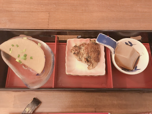 ランチで予約無しで突入! ここは日本酒が豊富で種類がよく変わるそうです。さて ・ポテトサラダは普通です ・鴨のロースは脂っこくなくて柚子味噌ソースが美味い! ・天ぷらは揚げたてなので当然美味しい。 言うならばレンコンは歯応え大事なのでもう少し厚く切って欲しい。海老はちょっと細身 ・刺身はカンパチの分厚さ好き!だけど柔らか過ぎて歯応え無い。タイは甘味が足らない。シマアジは分厚く歯ごたえと甘みもgoo! 全体的に食べ物は普通レベルだが、日本酒が豊富なので個人的に星1つup。 本日は岐阜のTERA(甘々)、青森の田酒(甘め)、石川の手取川(辛め)。どれも美味かったー。