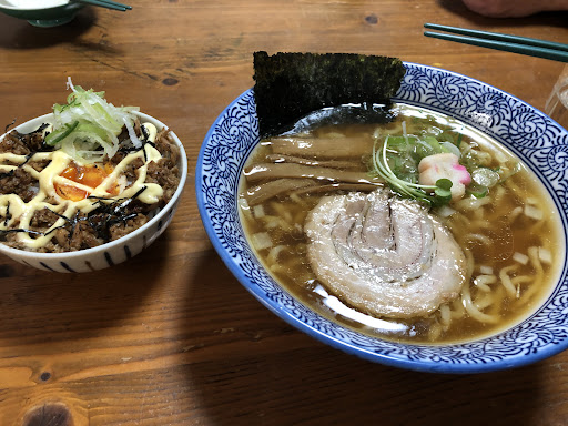 Read more再訪なのですが、今回は夫味(豚)の方をいただきに。 嫁味の方は売り切れていましたので、やはり嫁味の方が主力ですね。 大昔、喜多方ラーメンをちゃんと喜多方で食べた事があるのですが、本当に美味しかったのを覚えております。それこそ、嫁さんの漫画通り、九州県民はトンコツじゃいと思っていたのに強烈に美味しくて感動したのです。 で、夫味を食べてみたくなり。 とても好きです。おお、喜多方ラーメンだ、とひっそりと感動しておりました。きれいなスープで醤油ベースなのですが、トンコツのコクがあるというか、味に深みがしっかりある。しかし、さっぱりしている。 トッピングのメンマは下手したら主役になれる味です。アク感は全く無く、しっかりした味付け。チャーシューも思ったより味が濃くて驚きました。いや、久しぶりにこれは、ド好みに出会えました。 あと、嫁のまかない飯。これもかなり好きです。シーチキンの様になった濃味チャーシューに炙りマヨネーズ。このまかない飯をおかずに白米いけます。むしろ、次そうしますw お店は本当にローカル宿の食事会場ですから、独特の雰囲気がありますね。…まぁ、なぜか大昔の喜多方ラーメン屋さんはこんな感じのお店が多かったのですが。 再訪なので慣れてますが、初めての人には中々の難易度かと思います。 接客は人の良さが凄く出ていて、軽いお見送りまでしていただいたので、妙なくすぐったさがあって、これはこれで好きですね。 鶴崎に来てくださり...