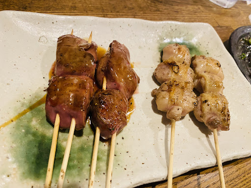 友人と2人で来店しました。りゅうきゅうを食べたくて来店したのですがこちらのお店にはりゅうきゅうが2種類あって食べ比べが楽しかったです。オーソドックスな方はまろやかな味で食べやすくて無限に食べられそうで塩味の方は手が止まらなくなる癖になる味でした。串の方は豚バラや鶏もも、ズリやネギまをいただきました。どれもお肉がぷりぷりしてて歯切れのいい食感でネギまのネギにもしっかり味が付いていてずっと楽しめる味でした。しゃものむね肉のお刺身も頂いたのですがさっぱり食べられて舌触りも良くてとても美味しかったです。お酒の種類も多くて私は果実酒ばかり飲んでいたのですが果実酒だけでもリンゴやもも、あんず、梅、ゆず、ライチなどほんとに種類が多くて果肉が入っているものもあって香りも良く飲みやすい味でものすごく美味しかったです。最後にチーズケーキをいただきました。甘さは控えめでチーズの濃厚な味で最後まで幸せな食事にさせてくれる味でした。 お店の雰囲気がすごく好きで、気さくで楽しいお兄さんと静かで丁寧なお兄さんのおふたりとも好きでした。あまりにも美味しくて楽しかったので今までにないくらい飲んでしまいました...また大分に来た際は...