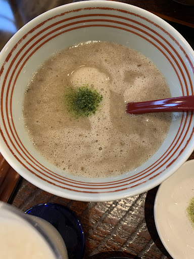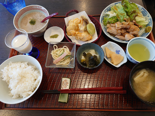 Read more金曜日13時頃訪問。先客は4組。それほど大きくない店内。人気店らしいので時間を遅めにしたのが正解と思われる。 空いているカウンターに着席し、そばセットを注文。セットには甘酒か梅ジュースが着くとの事なので、梅ジュースをせんたく。待つ事10分、料理が来ました。 そば、とろろ、ご飯、天ぷらと小鉢。彩りと見た目良し。とろろは濃いめの味付けでご飯とそばにピッタリマッチ。美味いです。 しかし、もう少し味を薄くしてとろろ自体の味を楽しみたかった自分もいる。天ぷらは抹茶塩につけても良いがそば出しにつけてもOK。食後に飲んだ梅ジュースもしっかりした梅でスッキリしました。 全て非常に品の良い内容でしたが、惜しむらくはサラダパスタはちょっと合わない気がした。これくらいの食事をするには、これく...
