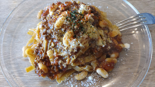 ミートソースには衝撃を受けました💥 トマト・玉ねぎ・挽肉の素材の美味しさ、ほのかに感じる辛さ、モチモチのタリオリーニ、適度な粉チーズ。コリっと歯応えのある白インゲン豆。くどくないオリーブオイルの量。塩梅の良い塩味。 そして意外なボリューム感! 生パスタでも1380円…少しお値段高いなぁ…と思っていましたが、適正価格という印象です😋