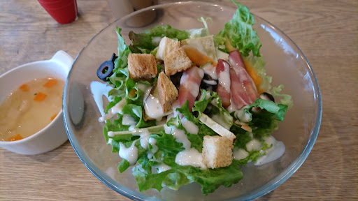 Read more店内は窓が大きいので明るいです。雑貨も置いていますが、私は今回時間がなかったのでよく見ていません。 ランチはサラダがたっぷりでとてもおいしかったです。 メインのパスタは乾麺か生麺か自分で選びました。生麺にしましたがとても美味しかったです。パスタもデザートも3種類ぐらいの中から選べました。 ドリンクも結構種類があったような気がします。 雰囲気といいお料理といいとても自分好みでゆっくりできそうです。 今回は本当に時間がなかったのでバタバタと食べてすぐに店を出てしまったので、またゆっく...