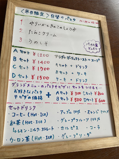 平日夜に行った。 駐車場は子どもの習い事を待つ親の車とか時間潰すために停めてる人が多くて、そこから気持ちが少し下がって。開店してないくらい暗い雰囲気。 パスタは具が何種類か選べるが、ベーコン・魚介・きのことかそんな感じ。2種類くらい組み合わせたらいいかもだけど、パスタにきのこだけとかベーコンだけとかの具で嬉しい人いるの?店に入ったからしょうがなく、無理やり選んだけど。 店内は椅子が重ねてあったりして倉庫がわりなの?客は私達だけなのに、一度もお冷のおかわりに来ない。食べ終わった皿は下げに来たけど、早く締めの作業にかかりたくて皿だけ下げたの?トイレの手前のボックス席が事務作業のスペースになってたけど、客1組に対して水のおかわりもできないのに見えるとこでパソコンしないでって思う。 パスタがおいしいとかおいしくないとか以前の問題で、とにかく客に対して失礼な店だと思った。特別おいしいとかまずいとかなかったけど、もうここには来ない。水のおかわりがないから喉が渇いて、すぐ違う店に行った。店員がすぐ呼べるとこにいないし、ここで時間...