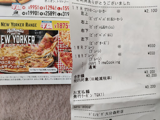 Read moreドミノ・ピザさんを訪れたのは3店舗目。近所に出来たので喜んでいましたが…夜8時位にテイクアウトで行ったのですが、店内は私と男性が1人従業員2人(後配達の方が戻られ3人)従業員の1人は新人さんのようで先輩従業員からアドバイスを貰い多少モタモタしていましたが頑張っている姿に応援する気持ちでいましたが…ピザを作っている段階でお客かと思っていた男性が厨房の外からアドバイスをし始めました。という事は店長あるいはそれに値する方かと思われます。ピザが焼き上がり帰る際、店内に従業員が4人もいたにも関わらず[ありがとうございます]を言ったのは新人さんのみ。混んでいたならわかりますけど客私だけですよ。以前コメントしましたが、高城店はオープンすぐでとても店内もデリバリーも多い中、店長らしき方が待ち時間が長くなっているお客さんに名前を確認し後どの位かを伝えてくれる、もちろんありがとうございますの言葉もありました。客が上だとは思いませんが、ありがとうは...