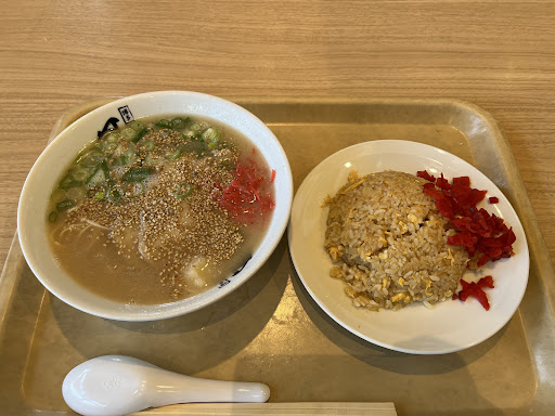 とんこつラーメン、半分やきめし、ぎょうざ6個が付いたお得なセットになってます