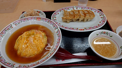 餃子が食べたくなり訪問。 着くまでは『餃子定食』一択だったのですが、中に入ったとたん『チャーハン』モードヘ移行気味… 少々迷った挙げ句『チャーハンセット(大盛り)』に落ち着き無事注文。 セットには餃子一皿とから揚げが二個付いており、餃子は安定の出来で問題なし… から揚げもサクッと揚がっており、程良い塩気と軽い食感で美味しかったです。 メインのチャーハンはと言うと、パラパラの仕上がりで炒めは良かったのですが、少し味(塩味)が濃かったように感じました。 食べれないと言ったレベルではなく、それなりに美味しくいただきました。 前回は『天津飯セット』を食べまして、その際はメインの天津飯に物足りなさを感じたのですが… もしかしてこちらの店舗のご飯物はバラツキが多いのでしょうか? 次回もご飯物のセットでチャレンジしてみたいと思います。