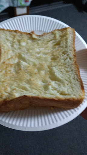 確かにコメントにあるように、美味しいです。 甘味と小麦の香り、ふんわりと柔らかな食感、柔らかすぎて最後の方は真っ直ぐ切るのも大変です。 でも美味しいからこそ、逆に砂糖の甘味が立ち、小麦の甘味が霞んでいるようにも感じます。 折角そのままでも十分に勝負出来るのではという位なのに、砂糖を入れる必要あるのかなと思ってしまいます。ハチミツも入ってるので過剰に感じます。 今まで食べていた他店パン屋(同価格)では砂糖無しでしたので、こちらのパンを食べてまるで菓子パンだと思いました。 美味しいと思いますが、個人的には砂糖の甘味がないそのままの方が好みでしたので、☆マイナス1です。 後は建物の構造上の問題ですが、出入口が1つなのは仕方ないとして、レジが入り口の前にある為、並んでいると入り口から右手に曲がりUの字になり、通路と入り口の狭さからとても2列で並びにくいです。 外にそのまま並べばいいのですが、結局2列になるので出入りしづらいのもマイナスでした。 衛生上右奥にあるパン製造部に出入口が遠い方がいいのは分かるのですが、ぎゅうぎゅうになるのが少しストレスです。どうせなら入り口から出口まで一方通行にして出入りしやすいよう...