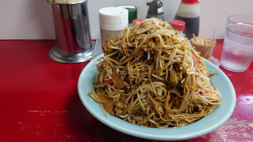 Read more「宝来軒」、戸次にある大盛で有名な「宝来軒」に行ってきた。戸次には宝来軒が2店あり、1軒は中津宝来軒の直営店らしい。今回の「宝来軒」はホームワイド戸次店の道路を挟んで反対側あたりです。 メニューを見ると、麺類、丼もの、焼きめし、焼きそば、カレーや餃子などあり、どれにしようか迷ってしまう。「チャーシューメン(850円)」も人気のようで、チャーシューが20枚近く乗っているそうだが、ここは1番人気「ちゃんぽん(800円)」を頼む。 しばらくすると「ちゃんぽん」が、ゆっくり溢れないように運ばれてきた。その「ちゃんぽん」は、野菜がどんぶりにてんこ盛り乗っており半端ない量だ。炒められたもやしやキャベツ、人参、玉ねぎなどの野菜と、豚肉、エビ、イカが入っていて、いくら食べても麺が出てこない。やっと出てきた麺は、チャンポン麺でなく普通の博多ラーメンの細麺。てんこ盛り野菜を食べている間に、麺はとっくに伸びている...チャンポン麺使ってくれたら...と思う。多くの野菜から水分が出るためか、スープや野菜は味が薄く、私は大量のコショウを振りかけながら食べた。 「チャンポン」味は★3、野菜高騰の中のコストパフォーマンスは★5 次回は「チャーシュ...