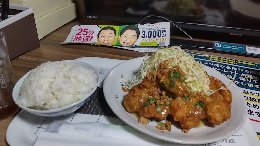 そしてご飯!メニューがとてつもなく多く、迷いに迷って580円のAランチ(チキンカツ+ハンバーグ)を注文。ご飯大盛り無料。平日11時の注文で提供時間は20分くらいやったかな?早い! チキンカツはサクサク揚げたてで、中の鶏肉が柔らかい。ハンバーグもふっくら分厚く、レトルト感無し。ご飯やサラダのドレッシングまで美味しかった~(´▽`) イベントメニューや時間帯により違ったりお得なメニューもあり、これは行ったら絶対頼むやろなぁ…と納得。 ご飯+数時間とかのランチパック的なのが有ったら最強だと思う!ご検討くださいw ここのご飯知ったら他の自遊空間でよくある100円カレー食べてるとき、落差に涙出ちゃうかもw