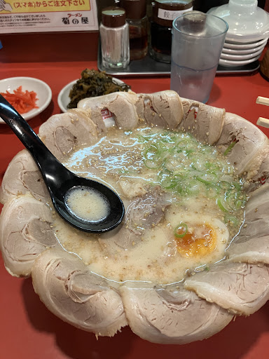 Read more日曜日の開店して10分後(11時10分)に入店しようとしたらもう既に中にある待つ席満席、外も5人並んでいました。とりあえず名前を記入し、外で20分ほど待ち中に入って5分程度待ち、席に着いてラーメンが届くまでトータル30分ちょい。 下郡は行った事あったのですがここは初めて。開店時に、既に行列と言う事は期待大 チャーシューメンを頼みました。メニューの写真ではチャーシューが沢山入ってたので、替え玉を前提に、まずはスープを匂って一口。どぎつい豚骨匂はなく、こってりでもない、まろやかな豚骨スープ。 うんまっ!前回のラーメン屋が少しがっかりだったので、やっぱり菊の家は安定した味!替え玉注文したら、今まで行ってきた色々なラーメン屋の中で一番替え玉の量多くない?と感じました(だって入れ物お皿じゃなく丼ですもん(笑))。自分は半替え玉位で丁度良かったのかもしれません。替え玉頼む時はスープが少しぬるくなってるので、麺の硬さは一つ下げて柔らかく頼むのが良いです。 無料の紅生姜(少なめが良)と辛子高菜(そこまで辛くなかったので多くてもgood)を入れるとこれまたあっさり豚骨が際立って、美味しかったです。 菊の家はやっ...