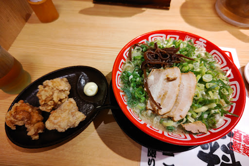 ネギ豚骨ラーメン+から揚げセットを注文しました。 スープは思ったよりあっさりしており、個人的には、おそらく濃厚タイプの豚骨ラーメンで丁度よかった感じでした。 麺の硬さも選べる上に、かん水の臭みも少なく、ラーメン自体は美味しかったです。 替え玉もあり一通り満足しました!