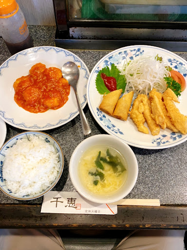 Read more千恵さんは中華のお店です 197号線からひとつ北に入った通りにあるので分かりにくいかもしれませんが 鶴崎の豊和銀行の裏手にあります ¥1000の定食はミニ春巻き 皮を取ったとり天 大根サラダ エビチリ スープ ご飯が付きます 中でもエビチリは海老がブリブリして辛さも丁度良くご飯にのせて何杯でもいけます お米の炊き方もとても上手で艶々で弾力のあるご飯が食べられます そのご飯で作る炒飯も美味しく うちの息子は毎日でも食べられると言います