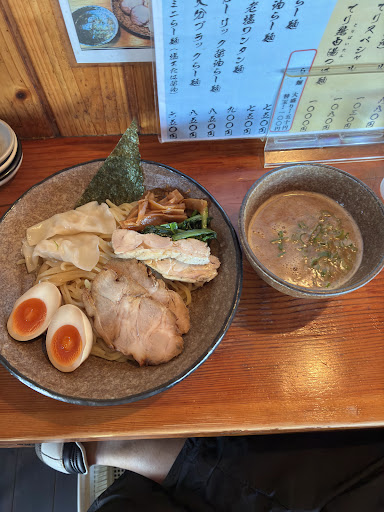 Read moreやっと来れた 大分県でもトップレベルに人気のつけ麺屋さん 11時オープンでトリア1050に行ってみた すでに2.3組並んでいる 私が並んだ後一気に増えてオープン前には満席分は並んでいた さすが人気店だ しかもここはみんなメニュー決めてきている 入ってメニューを見ていたらオーダーをあっという間に追い抜かれて出てくるのが遅くなる だからメニューをしっかり吟味してから訪問しよう メニューの最新のものは貼ってあります とりあえずこってりつけ麺とのスペシャルにしてみた 麺大盛りにできたけどここから色々食べるから普通サイズに まあ普通でも300あるから結構多いんだがな 届いたつけ麺はとても麺が綺麗だ そして具材がすごい このインフレ時代にこれだけのトッピングが載ってこの値段は破格じゃないだろうか? そして鶏白湯系かな? つけ汁と麺が絡んでめちゃくちゃ旨し これ大盛りでも良かったかも知らんなーと思うくらい美味い 人気の理由がよくわかる 食べ終わった後スープで割ると書いて当たったがスープが見当たらない 店員に聞くと無料で持ってきてくれる これは知らないと無理だな スープで割る際レモンもついてきてそれと一緒に割ると死ぬほど美...