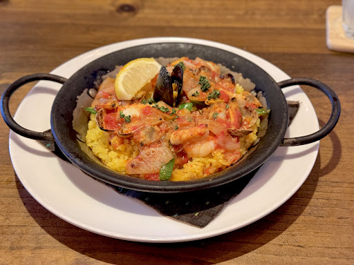Read more2025年5月下旬休日、遅めのディナータイムにGoogleマップで見つけて初訪問。 たまたま空いてたようで静かで落ち着いていて過ごしやすかった。 ランチとディナーの価格が同一ってありがたい。 店内は観葉植物がたくさんあって、明るすぎず落ち着いた雰囲気。テーブル席がたくさん。 パエリアとシーフードドリアをセットで注文。サラダのドレッシング美味しかった。ドリアはチキンライスだった。お手間かけてくれてるけど個人的にはホワイトソースを味わって食べたいからバターライスが良かった。パエリアは器のにおいが強く感じた。 デザートの注文が後からできないそうで、オーダー確認時に聞かれた。理由があるのかもしれませんが、初めての来店では食事の量がどの位出るかわからないし、食後のおなか具合でデザートを食べるか決めたいと思うのは私だけでしょうか。 入店時入り口に”人手不足のため、、”と案内の張り紙がしてあったけど特段待ちが長かったりなどのことはなく快適に過ごせました。 予約制へと切り替えていくそうなので予約して行った方...