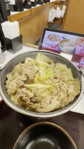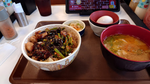 3回目 今まで無かった焼肉系のメニュー、牛カルビ焼肉丼を注文した。牛丼の肉とは明らかに違う少し厚めの大判肉が、甘めのタレでちゃんと焼かれていた。そのためか値段は少し高め。でも値段なりの美味さがあった。ご馳走様でした。 ――――――――――――――― 1回目 平日の昼間なのでランチセットの、牛丼Wランチセット650円税込を頂いた。並盛牛丼とミニカレーライスに、味噌汁が付くお得なセット。自分はこんなメニューがあるのは知らなかった。